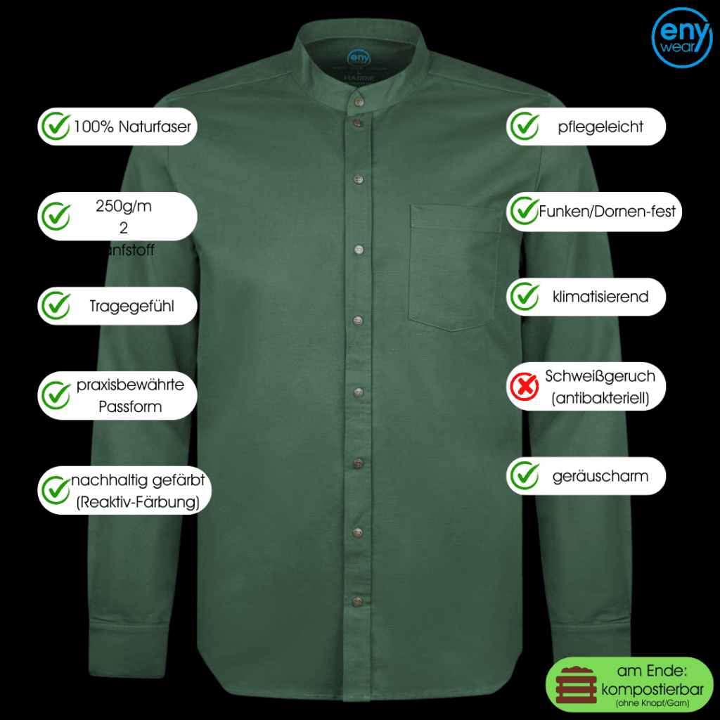 We consciously decided to go only with plastic free fibers. We also understand that workwear today is mainly made of 50-60% polyamides which provides a higher resistance. Hemp is our fiber of choice as being the strongest natural fiber available.